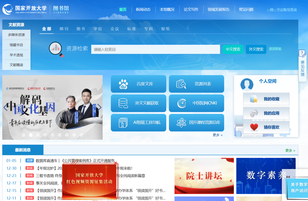 国家开放大学图书馆资源介绍及使用攻略